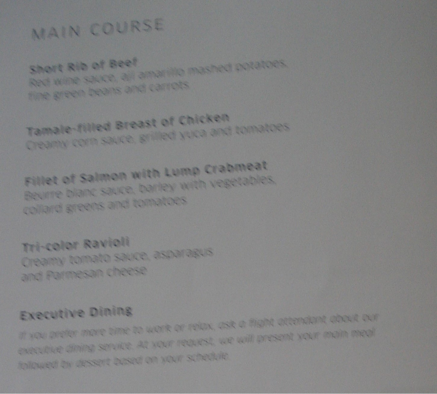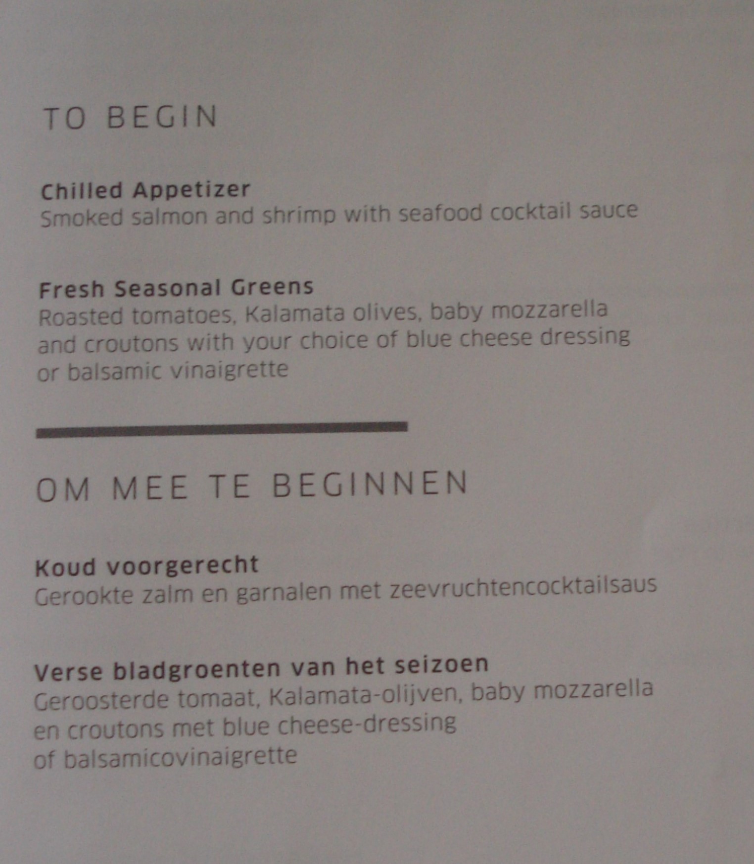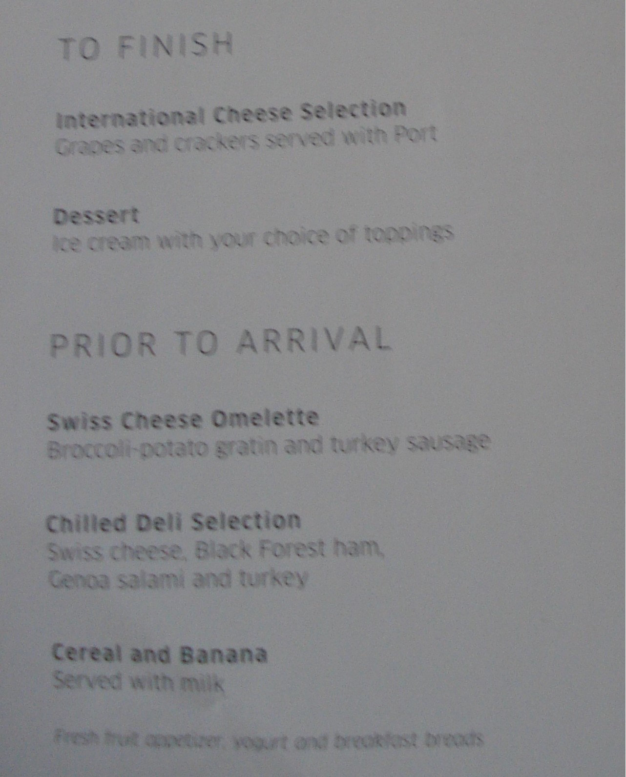 Not long after takeoff we were served dinner. The menu (click any photo to enlarge):
