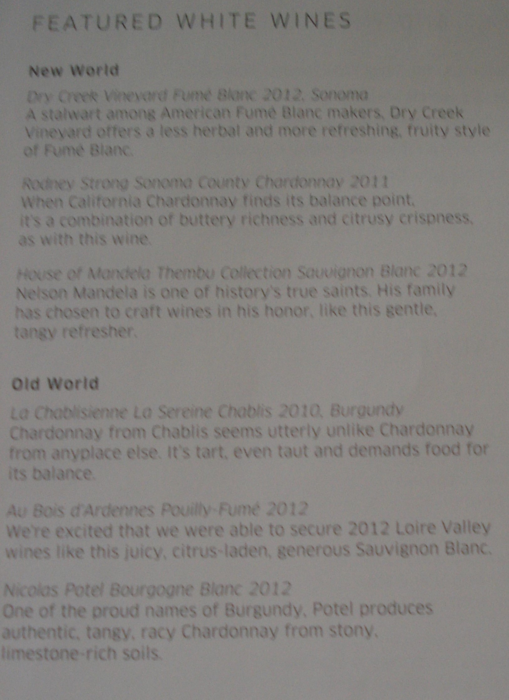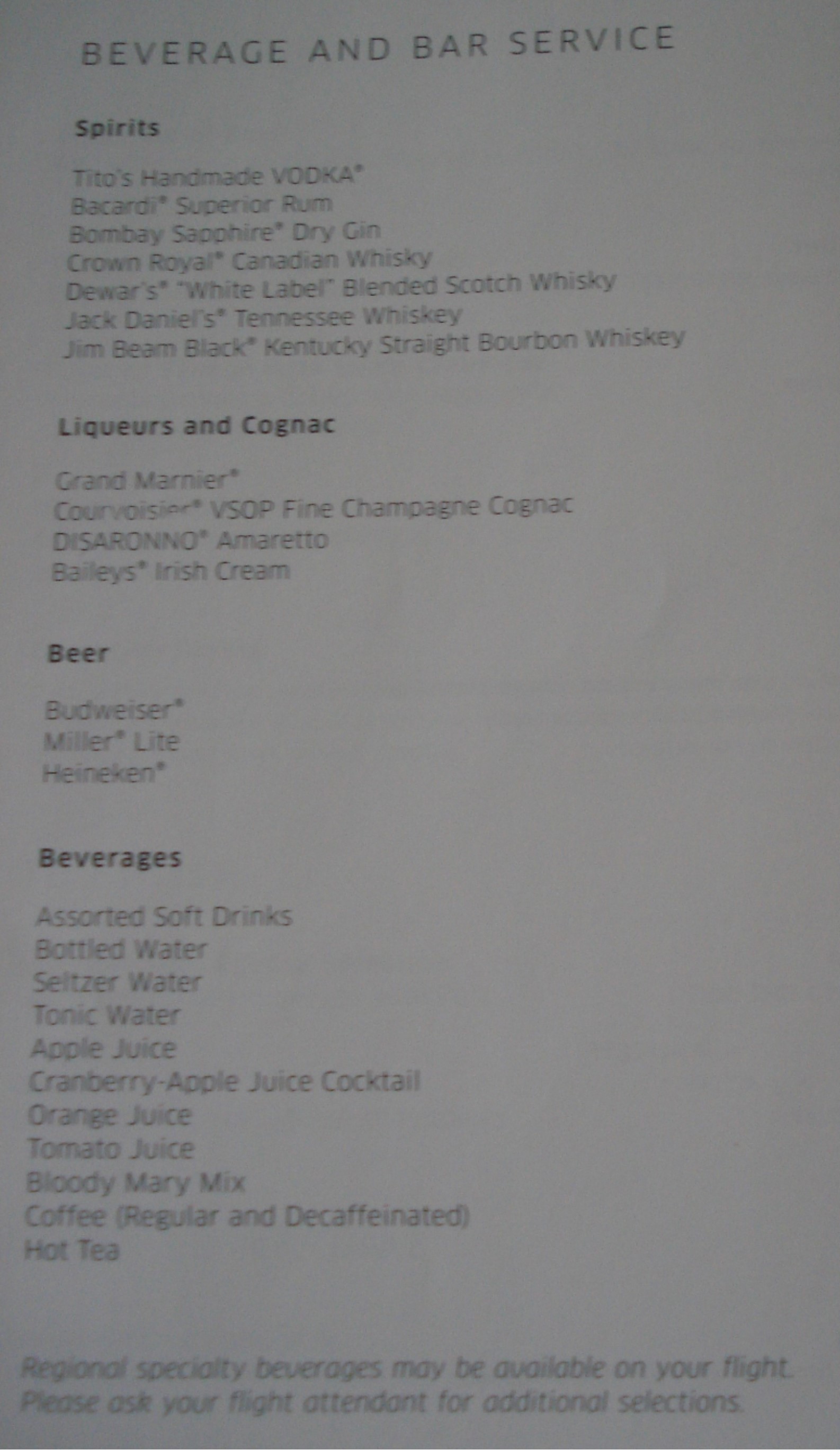 We were served beverages while on the ground. I just had some ice water. I don’t drink alcohol so can’t report on any of the offerings there though I will include the wine pages from the menu.