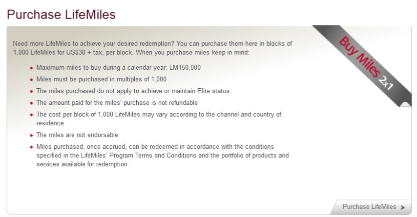 Right now Avianca is offering LifeMiles at 2-for-1 pricing. Miles are available in blocks of 1000 miles for $30 USD + taxes. A maximum of 150,000 LifeMiles may be purchased during a calendar year.