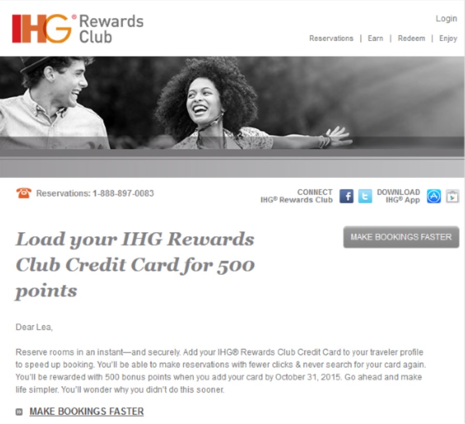 If you have the IHG® Rewards Club Credit Card you can get a free 500 points by adding the card to your Rewards Club profile by October 31, 2015.