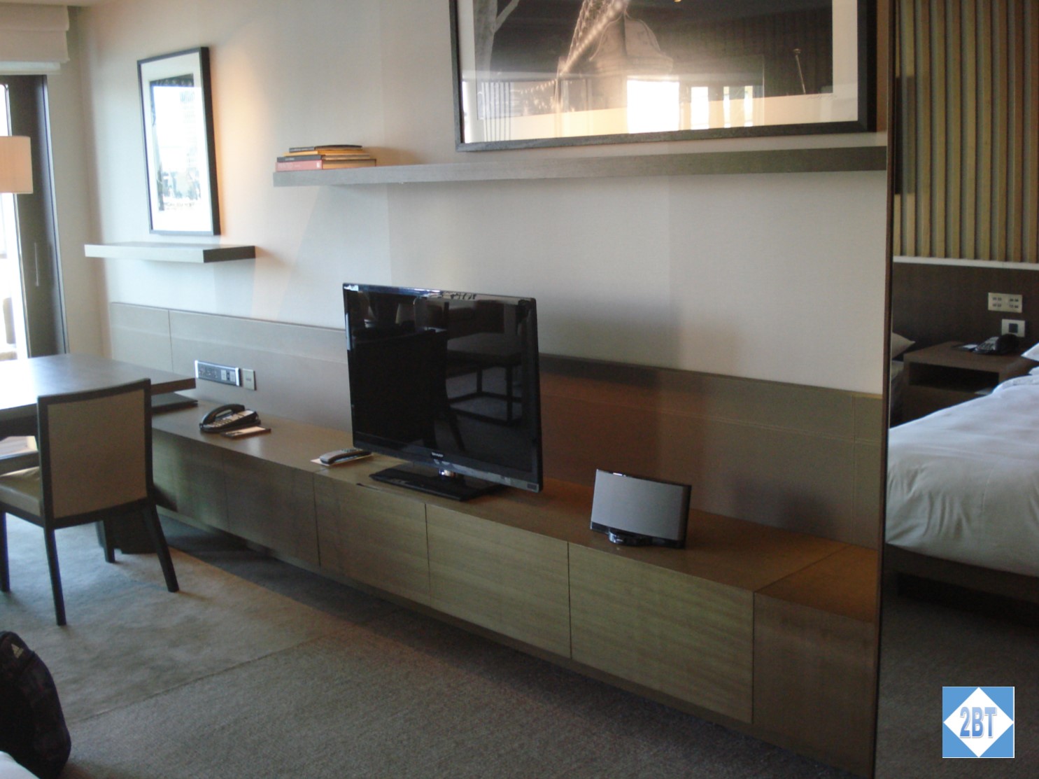 While I’d hoped to have a view of the Opera House from the room, I learned that those rooms have a max occupancy of two people, so we would not be able to have one. Disappointing but I was glad to know that before I arrived instead of building up my hopes only to have them shot down later. Our Harbour Twin room was quite large, so that even after the furniture was shuffled a bit to accomodate the rollaway bed, it did not feel crowded.