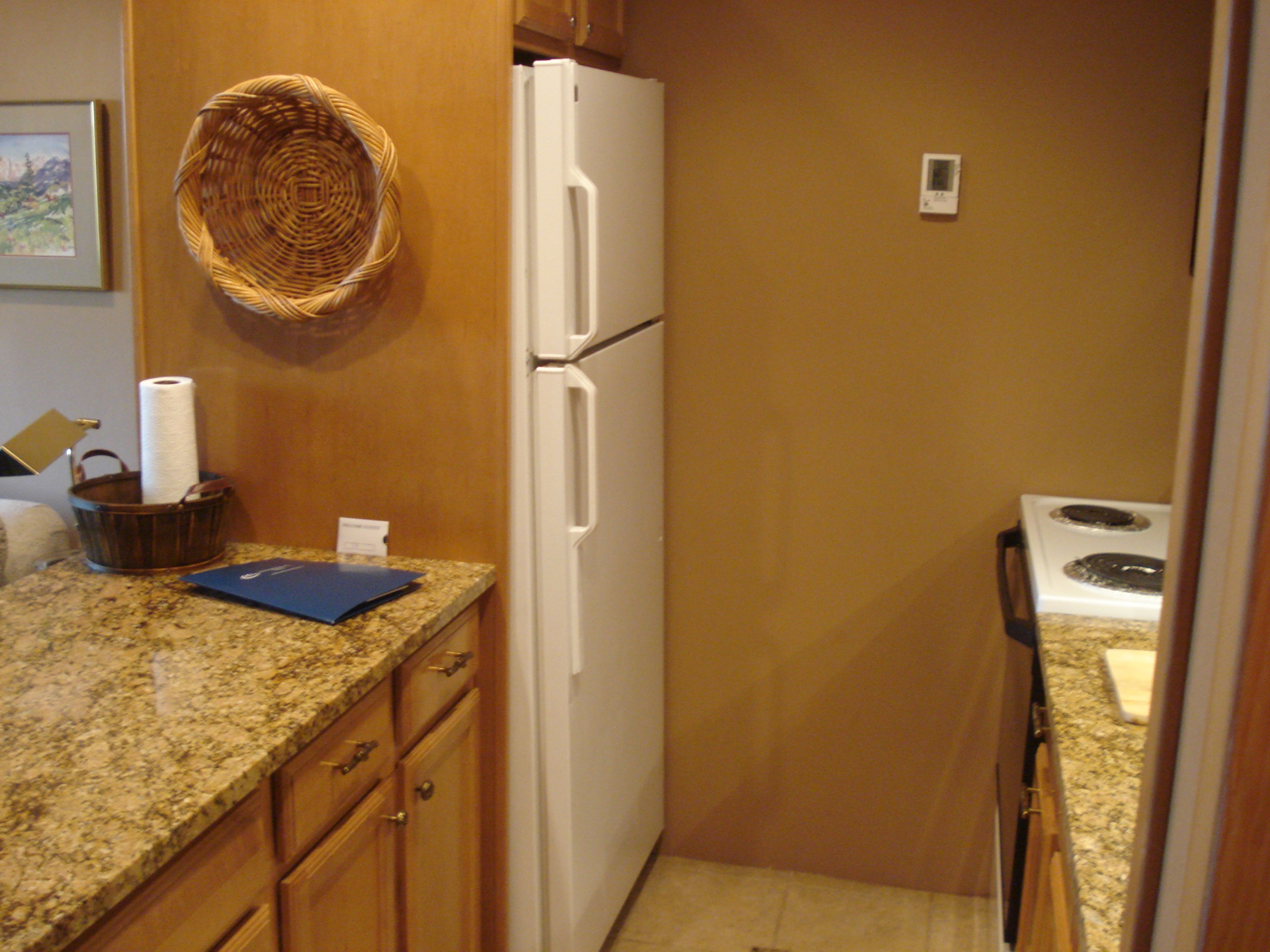 The galley kitchen was small but since we only ate breakfast there, it worked out just fine. There was also a small balcony with a large gas grill and a table with two chairs. Since our room faced west and got the afternoon sun, leaving the sliding glass door open for a little while was an easy way to cool off the room.