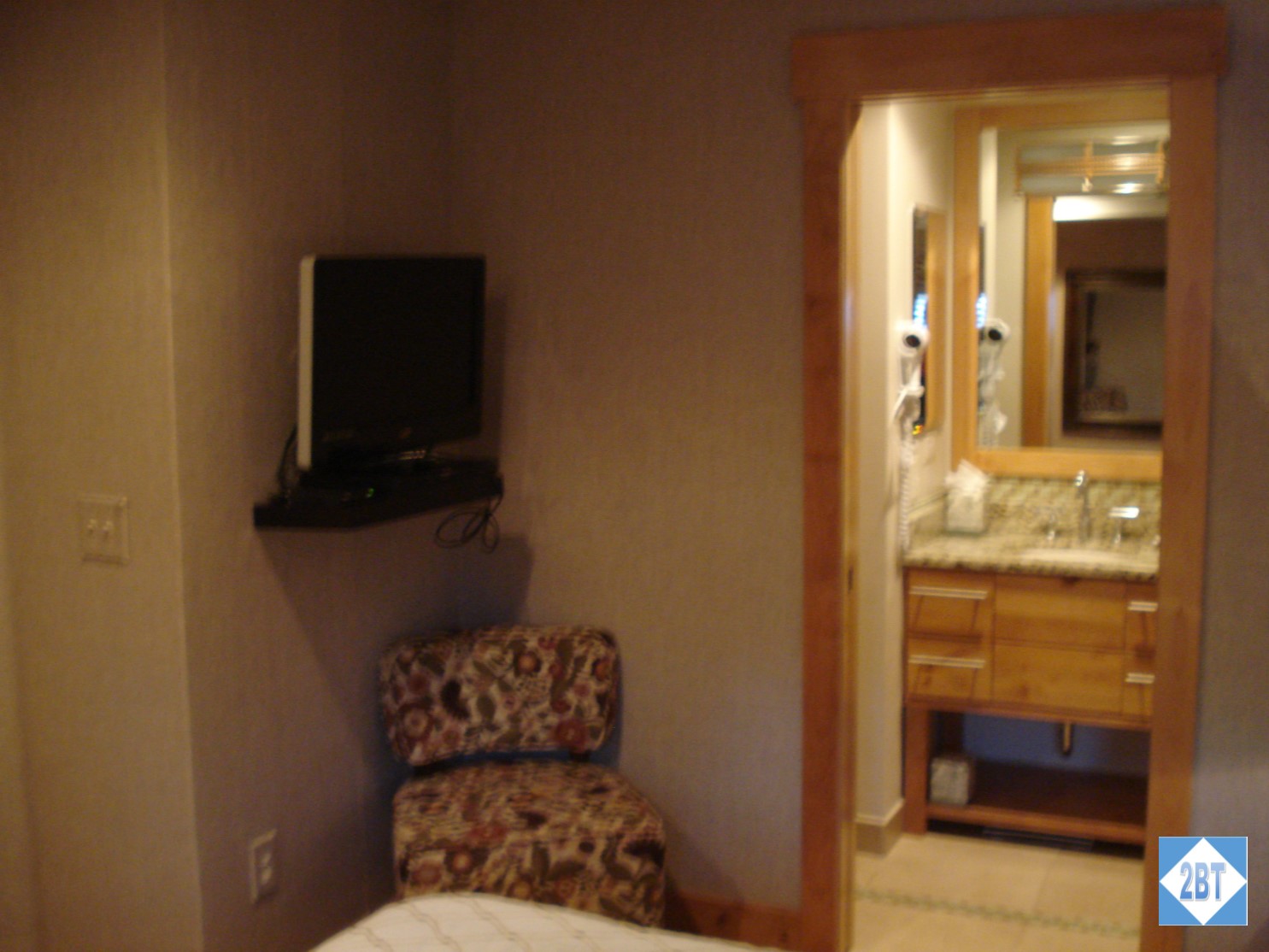 Accessible from the second floor are the pool and three hot tubs. The pool is heated so it can be used during the winter too. A small exercise room overlooks this area. It had an elliptical, a treadmill, a bike, a weight machine and some balance balls. When you check in, be sure to ask the front desk for a robe. It’s great to wear back and forth to the hot tubs!