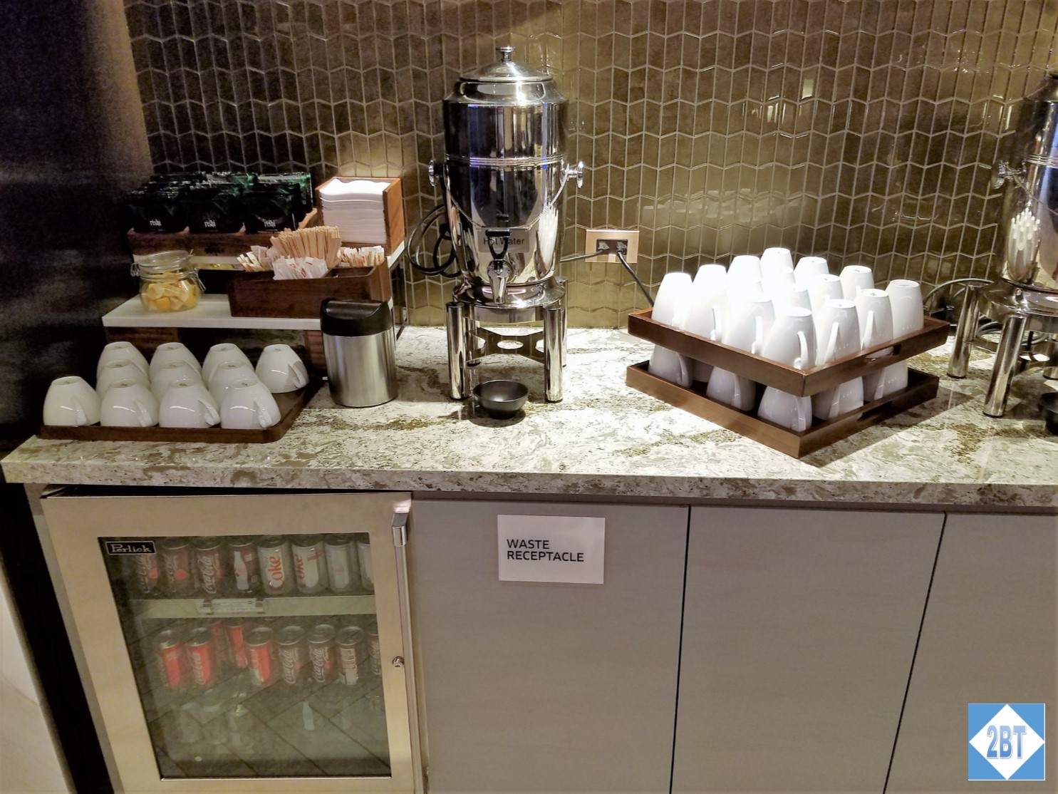 The hydration station had water and other cool beverages at one end with coffee and tea at the other. A small fridge underneath had canned soft drinks.