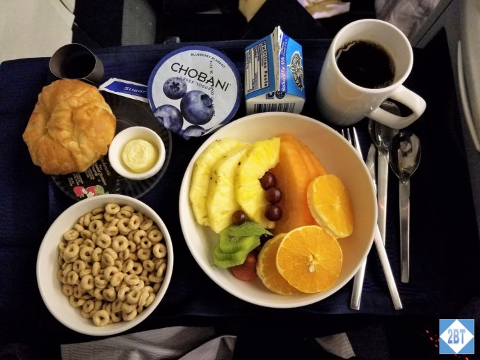 For breakfast I had the cold selection, which was all served on one tray. The cereal was Honey Nut Cheerios and I liked most of the fruit, especially the melons and pineapple. I was glad the croissant was mostly room temperature instead of refrigerated like it is sometimes. I’m not a huge fan of Greek yogurt but this was not as thick as some I’ve had, so it was pretty good.