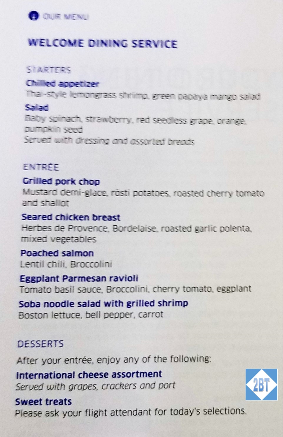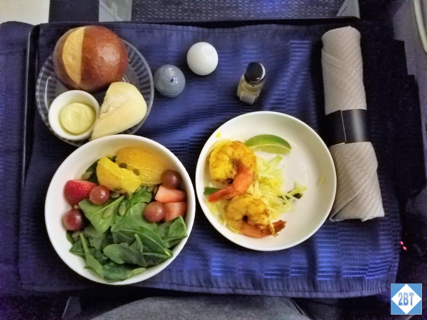 We pushed away from the gate on time but due to a rainstorm that had gone through earlier in the evening, we ended up sitting on the tarmac for about 1h 20m. I was quite glad we’d managed to have even a little food in the Polaris club or I’d have been extremely hungry by the time dinner was served.