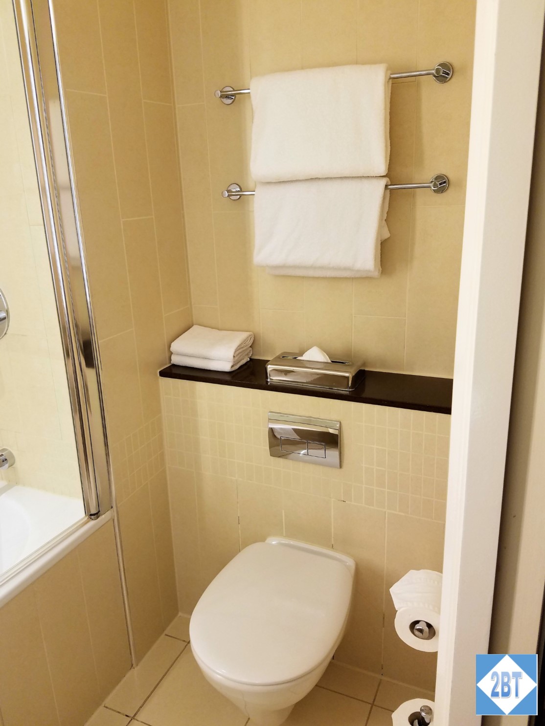 The shower/tub had that annoying glass half-wall instead of a shower curtain or full glass door though I will admit this one seemed to keep the floor dry better than some others I’ve experienced. The tub was a bit narrow and had a bigger step up into it than most tubs here in the US. I’m just curious if Europeans always stand sideways in the shower? Because I couldn’t comfortably stand with my feet shoulder-width apart in this tub.