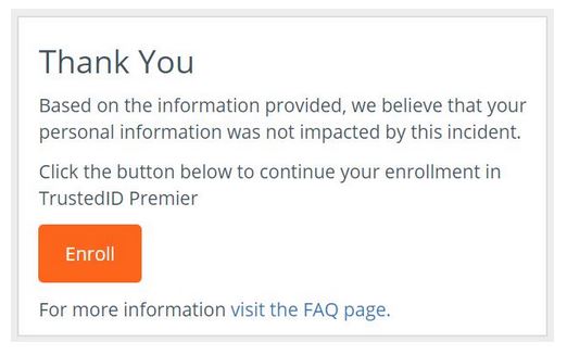 He takes that to mean their data is safe. When he clicked the ENROLL button he was taken to a page similar to this: