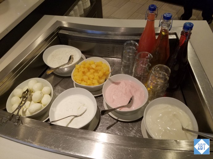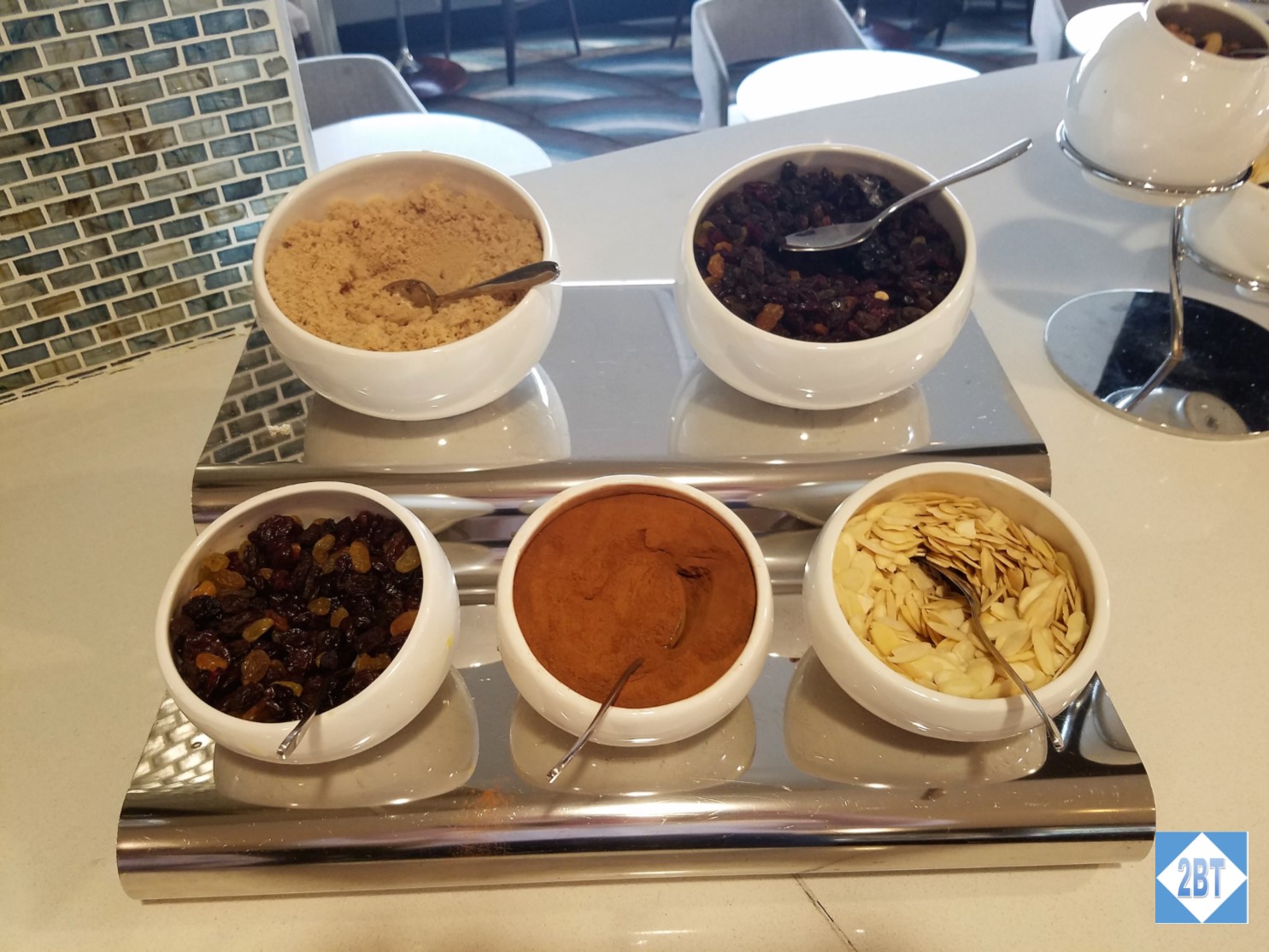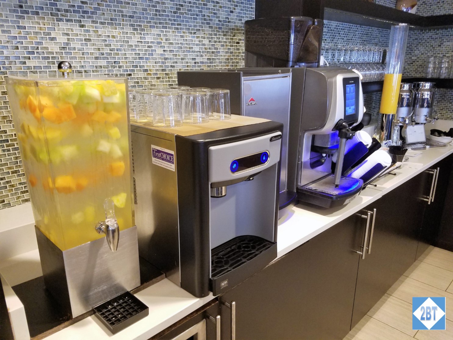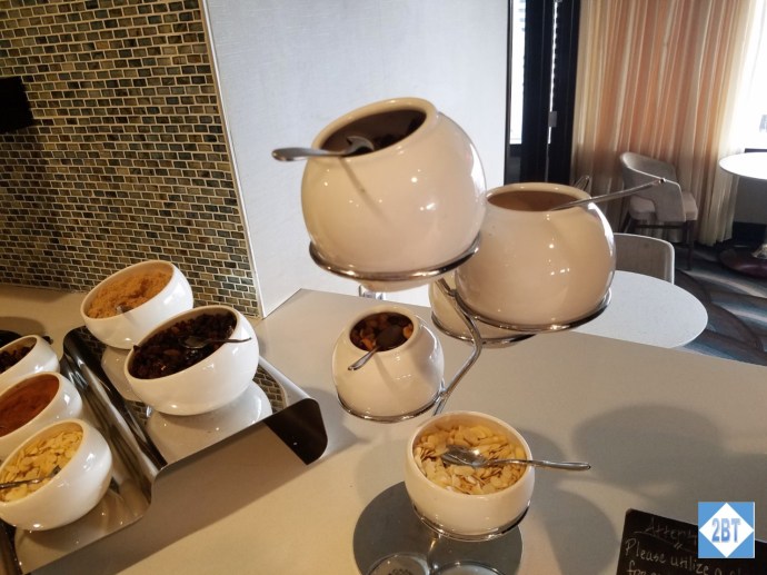 The Regency Club is also on the 32nd floor and offers city views in the opposite direction from the gym. I was disappointed in the selection as there was not much in the way of hot food at all. Oatmeal and grits were the only hot foods. There were about 5 kinds of cereal and a good selection of fruit, both bite-sized and whole, and a small selection of pastries and breads. Several types of juices were available as were coffee and tea, but that was it. Breakfast is offered 5:30-9:30 AM Monday-Friday and 7:00-10:00 AM on the weekends.