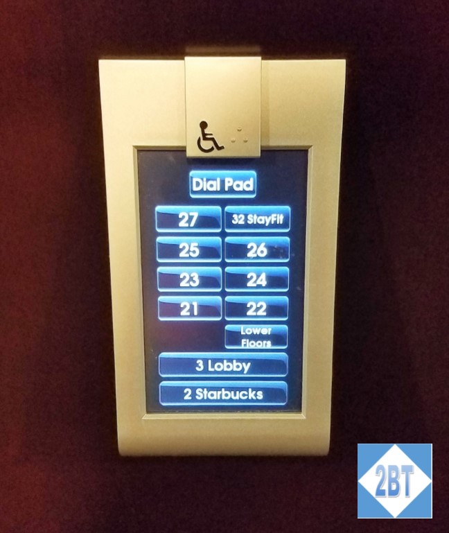To access a floor, you scan your room key underneath the keypad. It will automatically light up your floor but if you want to go to a different one (like the club) then you select that button instead. Once it knows which floor you want, it will assign you to one of the elevator cars. This usually worked pretty well. The only time things were really crowded was when we were all heading downstairs to the convention at once.
