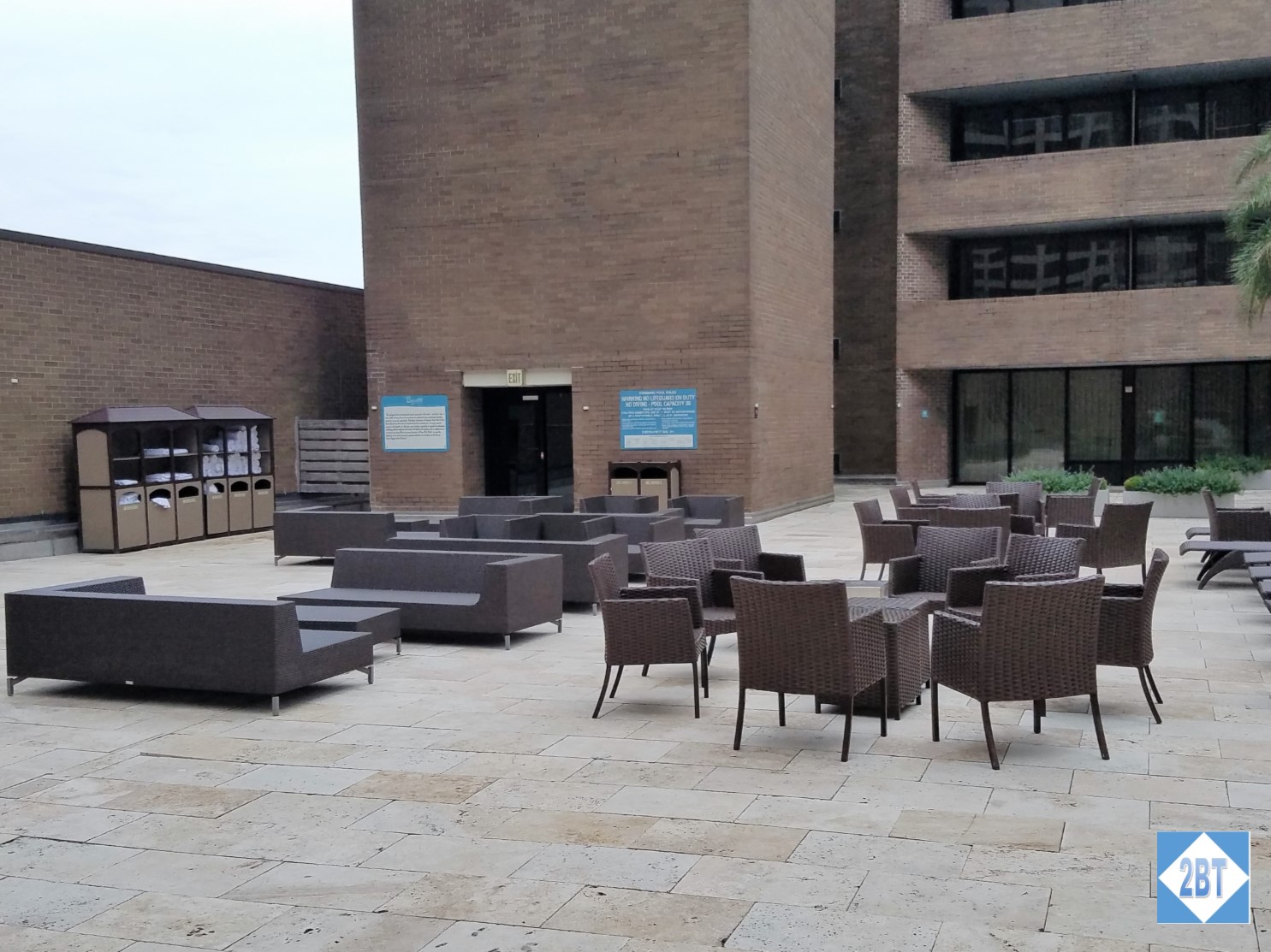 The pool is located on the 5th floor and you must use your keycard to gain access. From there it’s down a flight of stairs so I don’t know if it’s totally handicap accessible though there may be an entrance from a different direction. The pool deck is fairly large and from 8-10 on Saturday mornings there is some sort of free exercise class there. The deck is right amid a number of tall buildings so I don’t know how much sunlight it actually gets. But the famous New Orleans humidity was in full force, even at 8 AM.