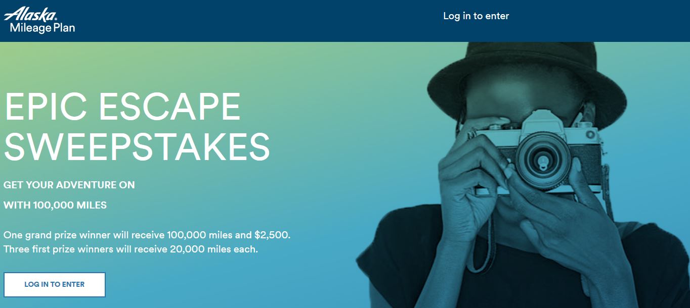 Not to be left out, Alaska Airlines is also offering 100K miles + $2500 to the grand prize winner and 3 first place winners get 20K miles apiece. To enter, just log in to the Mileage Plan shopping website and you’ll be signed up!