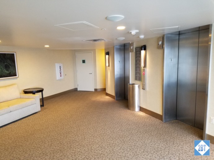 Arriving at the fifth floor lobby I noticed it was fairly large, which would be nice if there were a number of people waiting for the elevator, especially if they were all decked out in ski gear. Later during my visit I noticed that there was music playing on the overhead speaker and it was loud enough that I wondered if the first few rooms along the hall could hear it behind their doors.