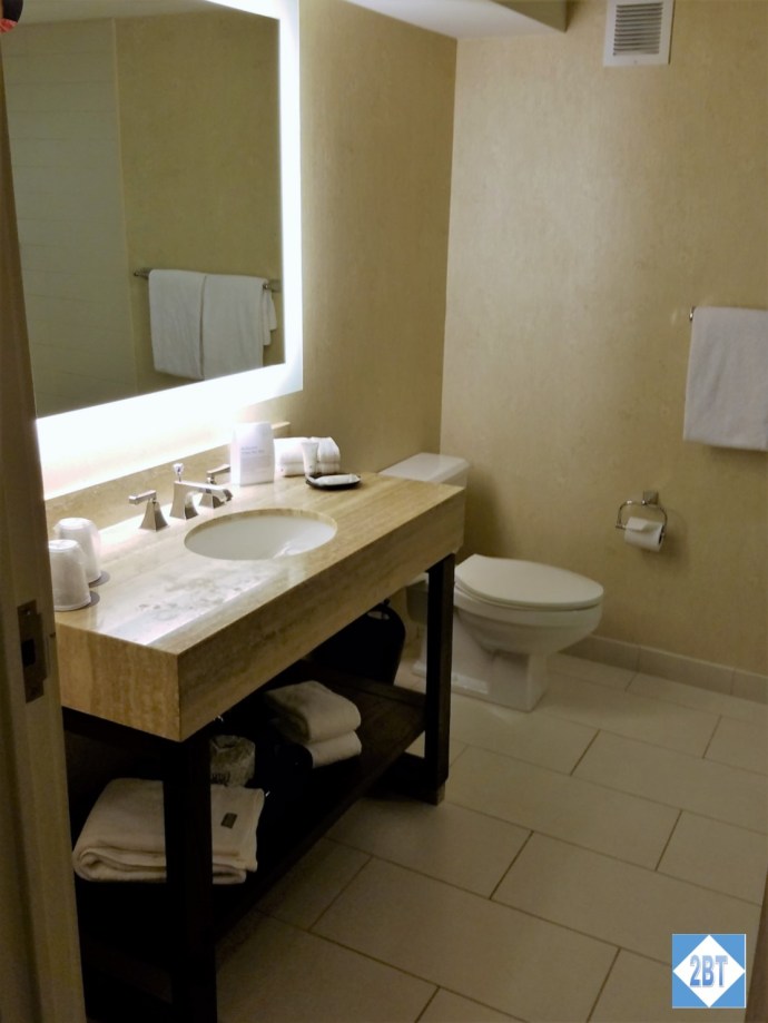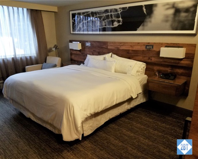 The associate who checked me in was efficient and friendly. She recognized my SPG Gold status and asked if I’d prefer 500 points or a coupon for an adult beverage. Naturally, I took the points. I said I only needed one key but she said she’d give me two as the room had a slot where the card needed to be entered for the power to work. I appreciated that since it meant I wouldn’t have to use a card of my own for that purpose. I was given the keys to room 598 and pointed to the elevator which were not far away.