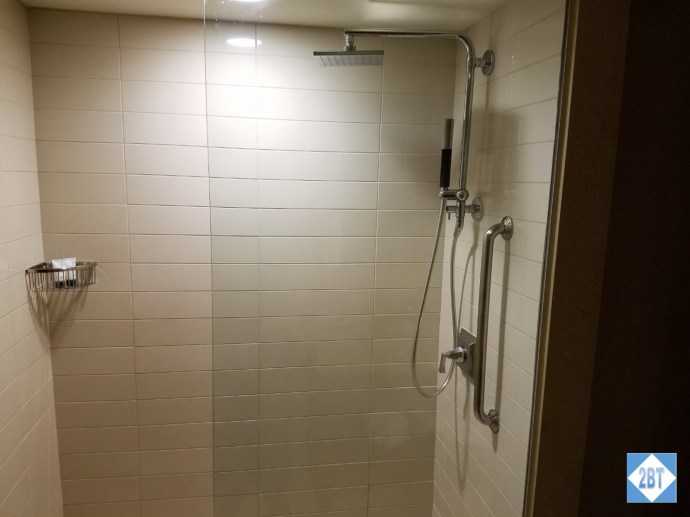 The walk-in shower had both a rainfall showerhead and a hand-held wand. I wish I could tell you about water pressure, etc. but as I had no clean clothes to change into, I did not get to enjoy the shower.
