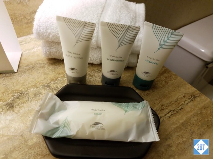 The toiletries were White Tea Aloe made by Heavenly for Westin. I only got to use the hand soap but it worked fine. I did like its leaf shape.