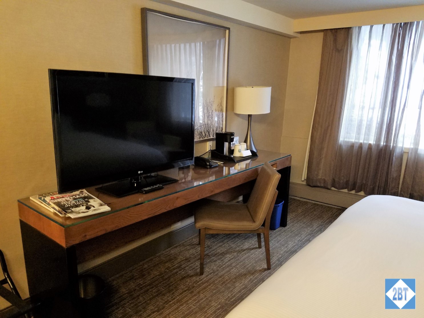 The associate who checked me in was efficient and friendly. She recognized my SPG Gold status and asked if I’d prefer 500 points or a coupon for an adult beverage. Naturally, I took the points. I said I only needed one key but she said she’d give me two as the room had a slot where the card needed to be entered for the power to work. I appreciated that since it meant I wouldn’t have to use a card of my own for that purpose. I was given the keys to room 598 and pointed to the elevator which were not far away.