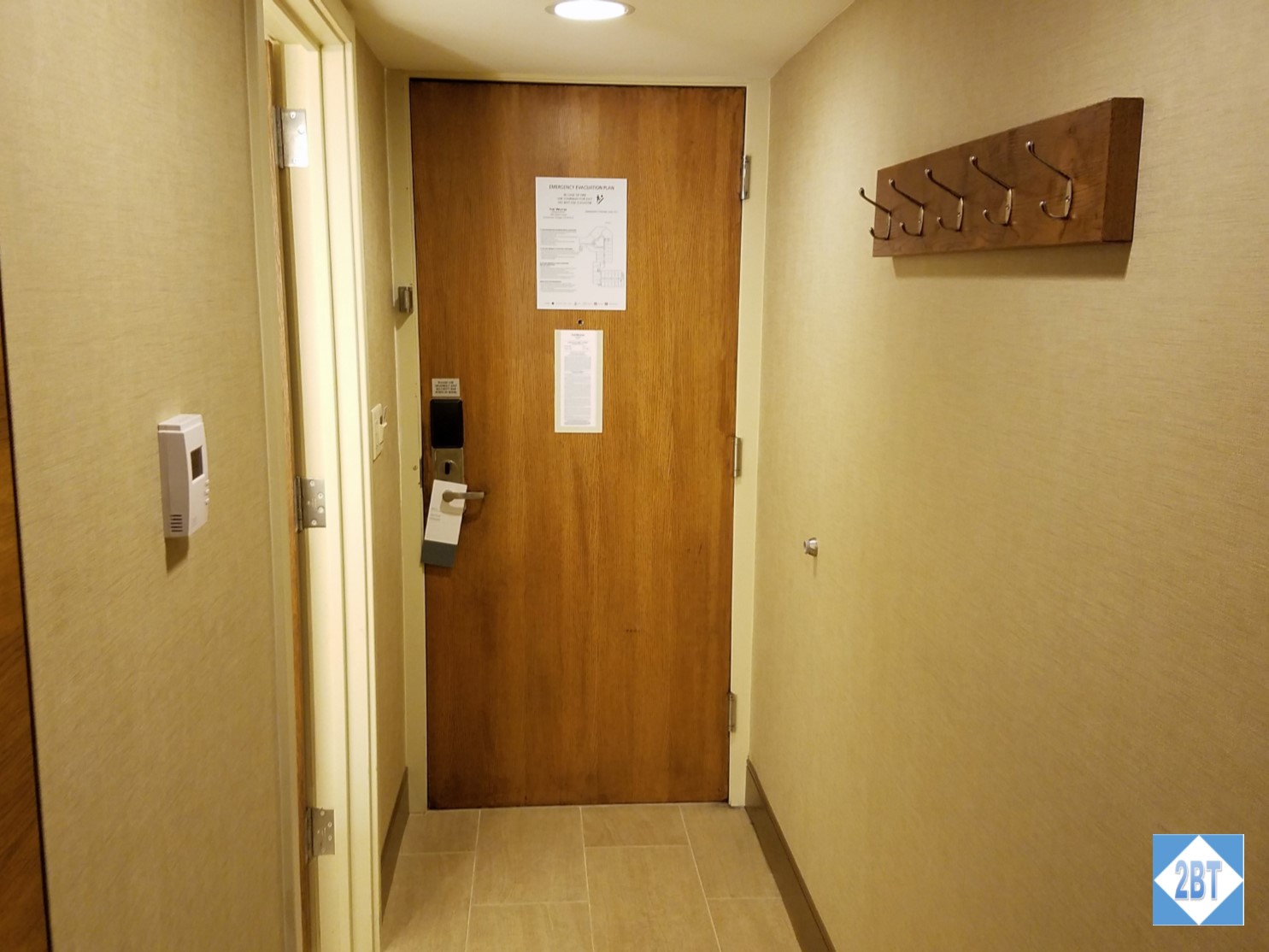 Since I had no bags to get settled I could immediately get down to business documenting the room. Like most hotel rooms there was an entry hall with the bathroom on one side and then it opened into the actual room.