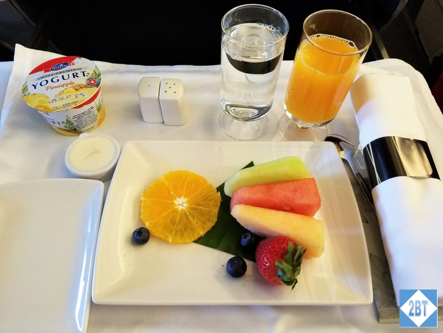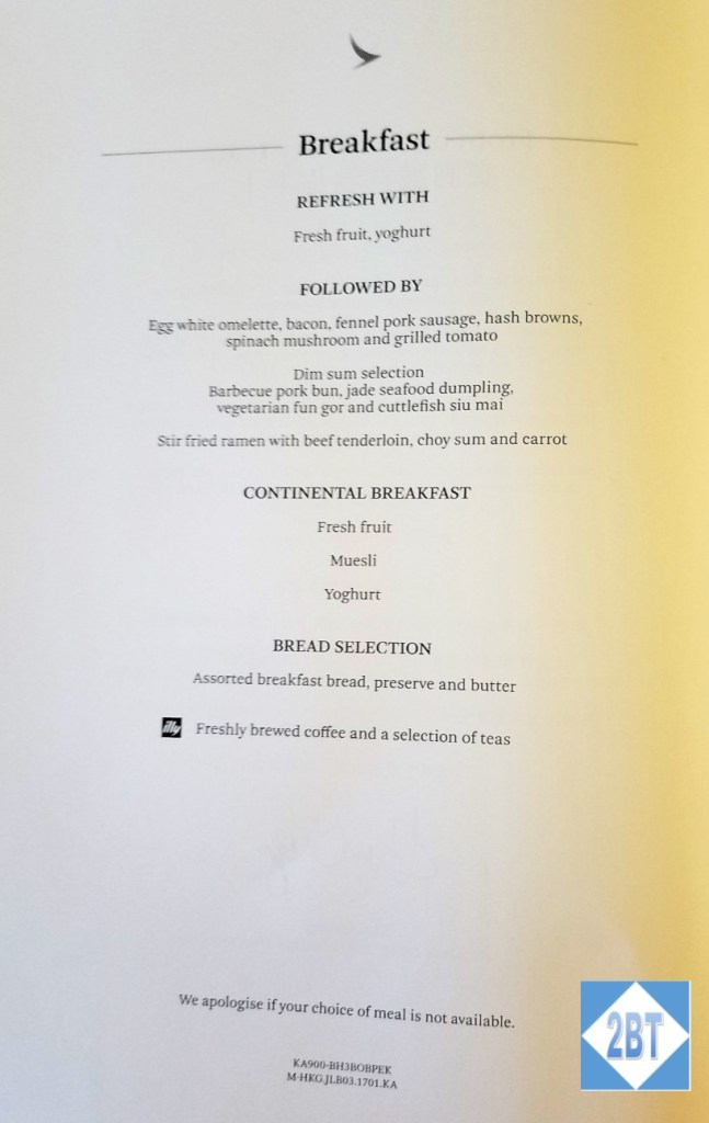 Once getting airborne, it was time for (another) breakfast. After all it had been about three hours since we’d last eaten so we had to be hungry again, right? The menu: