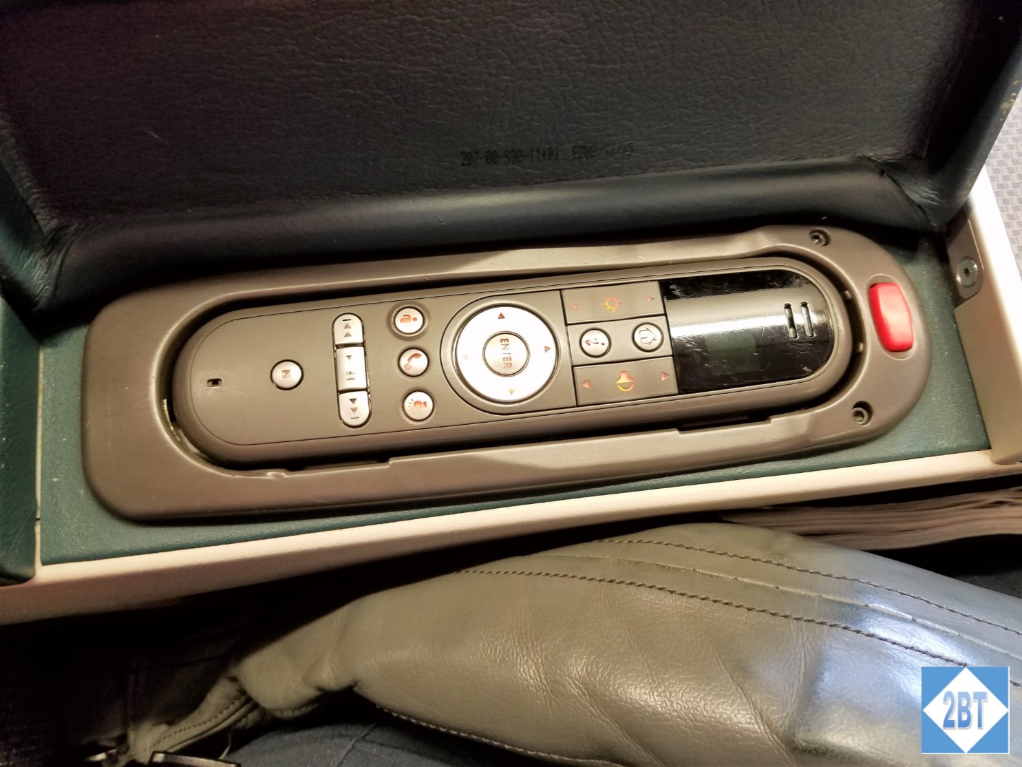 The IFE controller was beneath a flip-up panel in the center armrest.