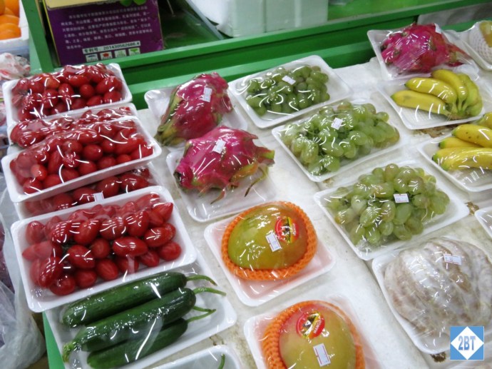I don’t recall seeing a supermarket of any large size in China but some of the food markets sold a lot of other goods too – they were just tucked down below street level in much smaller stores. Scenes from the supermarket: