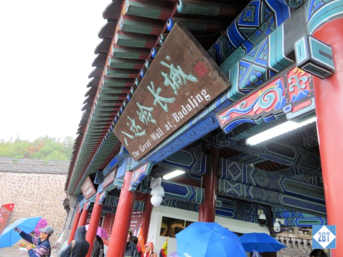 After an early breakfast we boarded the motorcoach and drove about 1.5 hours northwest of the city to the area of Badaling where there’s a well-preserved section of the Great Wall as well as all of the tourist shops. It rained the whole time on our drive out and it rained most of the time we were climbing the wall and I do mean climbing. I was surprised at how steep it was in sections – and some without stairs so it meant walking up steep inclines on slick, centuries-old stones. The only good thing about the weather is that it kept the tourist traffic down. I’ve seen photos where the walkways were so crowded you could barely move but that was not the case during our vist. Unfortunately it meant our photos didn’t come out great but it was definitely a thrill to get to see it.