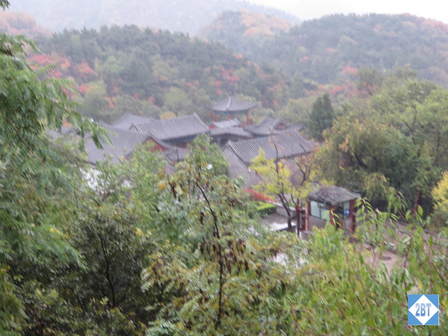 The towers offered a little protection from the rain though the windows were, of course, just holes in the wall and the rain could blow in. But it allowed us to take a shot of the plaza below.
