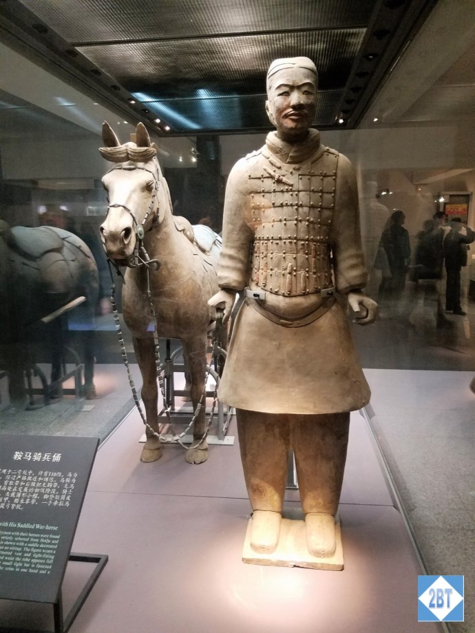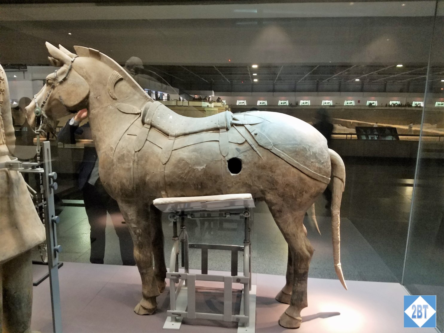 In Pit 2, where we saw the horses and charioteers, archeologists also found Cavalrymen with Saddled Horses like this one.