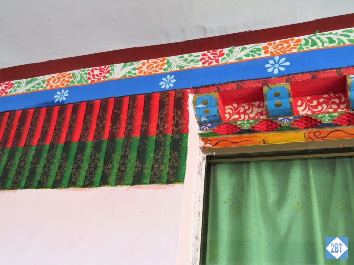 We stopped beside an array of businesses then went down an alley and found this colorful home entrance. Wherever we went in Lhasa color seemed to be everywhere.