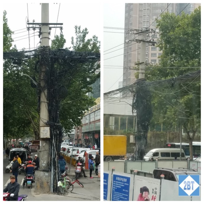 Another thing we found fascinating was the way wiring was strung down the streets. We’re assuming this is coaxial cable or telephone lines but at the poles it just looks like a giant rat’s nest. We had noticed this to a smaller degree in the hutong in Beijing but the mass we saw in Xi’an was easily 100 times larger. The photos aren’t the best as we were in the bus when they were taken but it’s truly a sight to behold.