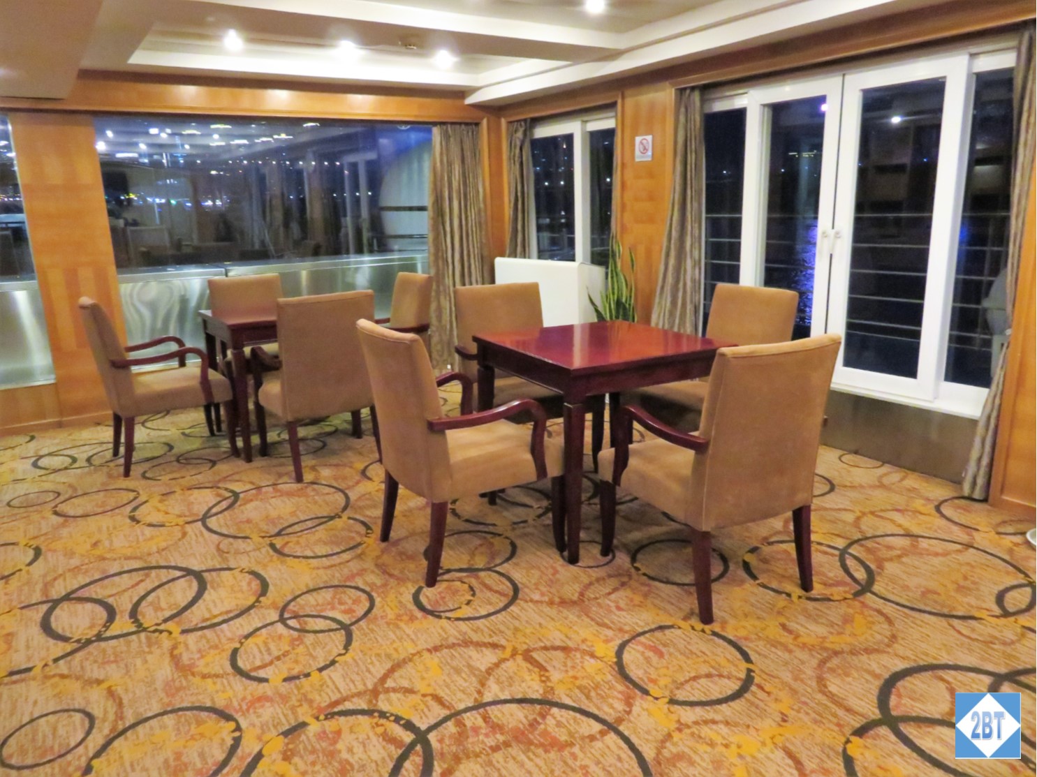 Observation Lounge Seating – the area by the black curtains is a dance floor at night and where tai chi was practiced in the mornings