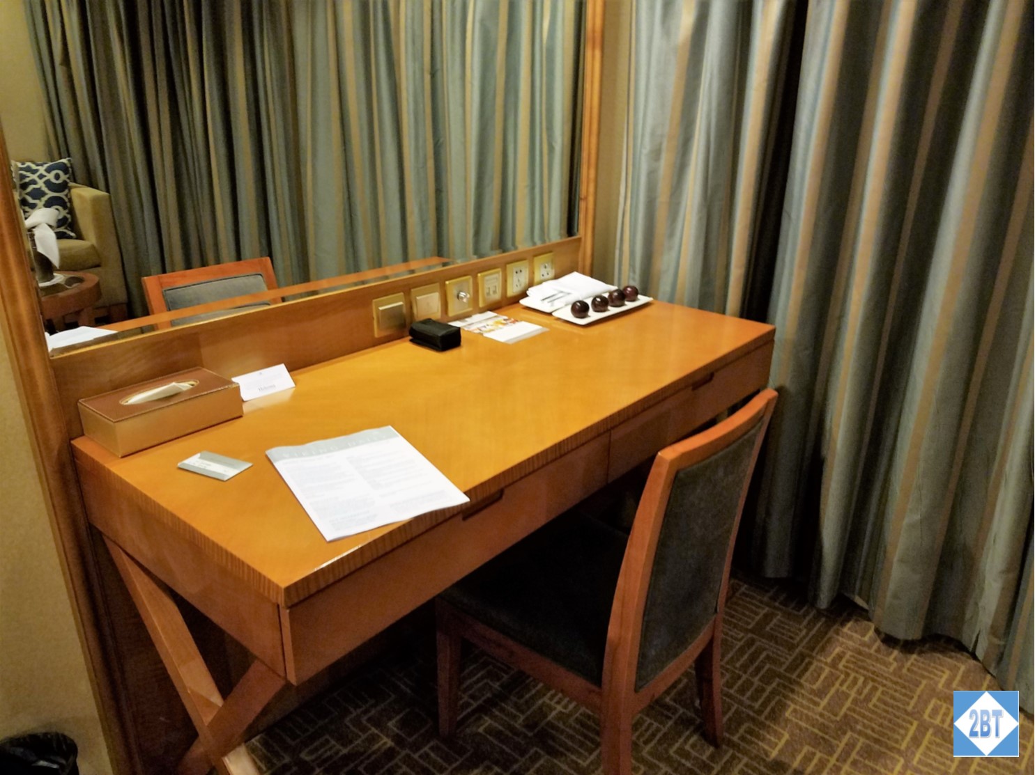 Across from the sofa was the desk which had several outlets handy. Unlike the European boats there were no 110v outlets but fortunately all our electronics could handle the 220v with just a plug adapter.