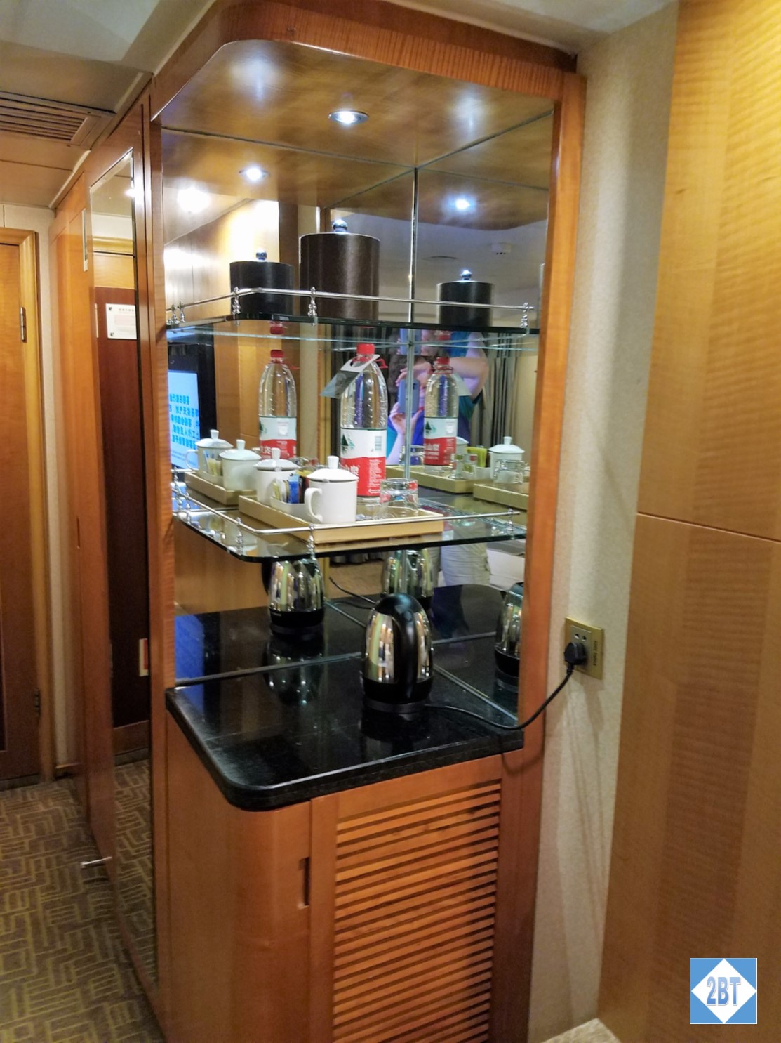 As we had previously experienced, we received a warm welcome once we arrived – perhaps even more than usual because the staff was all aware of the ordeal we’d been through in Lhasa. The boat was already bustling with other passengers who’d done the Imperial Jewels of China tour. That tour is the same as our Roof of the World tour but without the stop in Tibet. Though the Emerald is a little larger than the European boats, the lobby made us feel right at home as the layout was very similar.