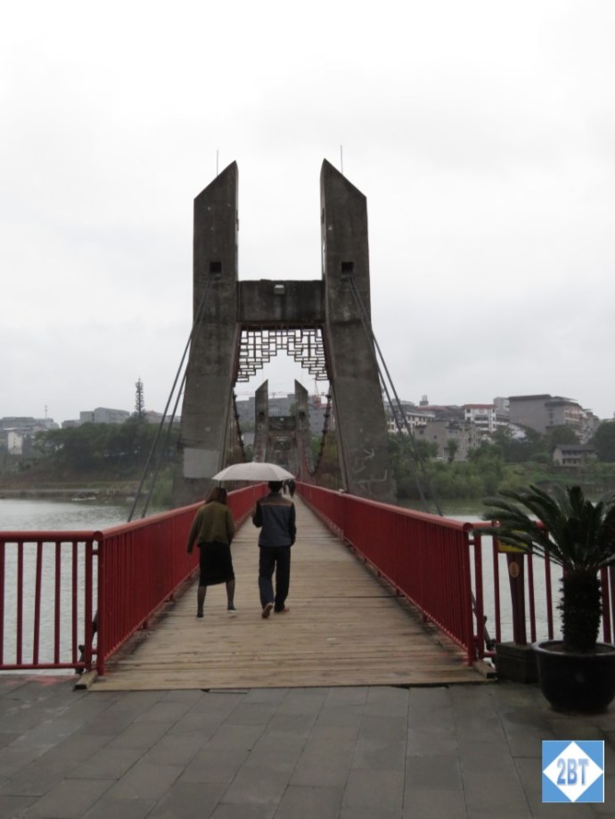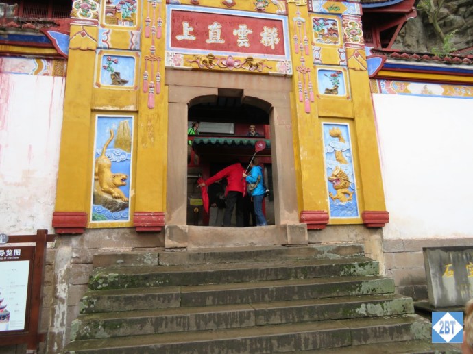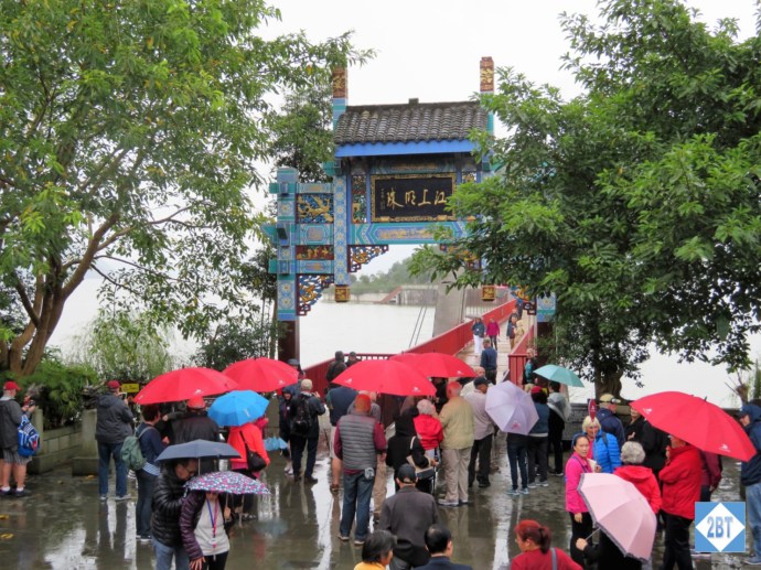 This is Shibaozhai, which means “precious stone fortress”. This multi-story pagoda is built against the side of a stone hill and at the top is a temple. But first, we had to reach the area.