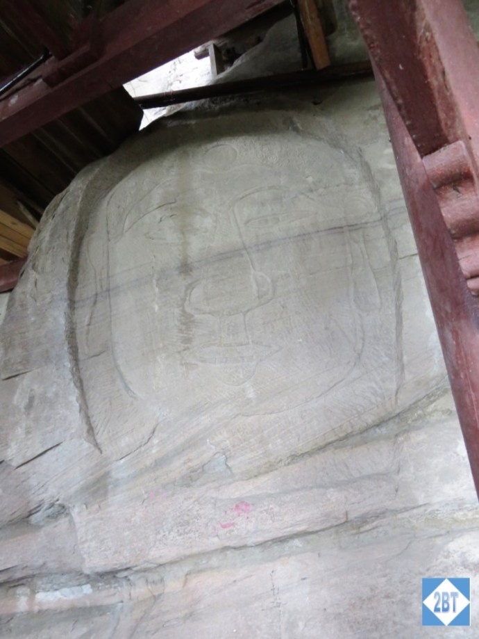 On the 6th level there’s a Buddha’s head inscribed in the rock. It dates to the Ming dynasty (mid-14th through mid-17th centuries) while the pagoda was built during the 19th century. That means someone carved this figure halfway up the sheer rock well before there was any type of pavilion there to support such an effort.