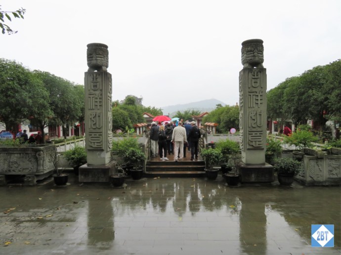 We finally reached the top of the pagoda and were then able to step onto a plaza on top of the hill. The day was a bit overcast but the hillsides were a lovely dark green, a color we’d see a lot of as we moved through the gorges.
