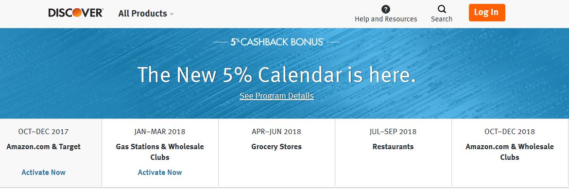 For the Discover Card, restaurants will earn you 5% cash back. Remember that you must activate your Discover Card bonus BEFORE making any purchases or you won’t get the bonus cash back. To register your card, look for the email that should have been sent to you or visit this link.