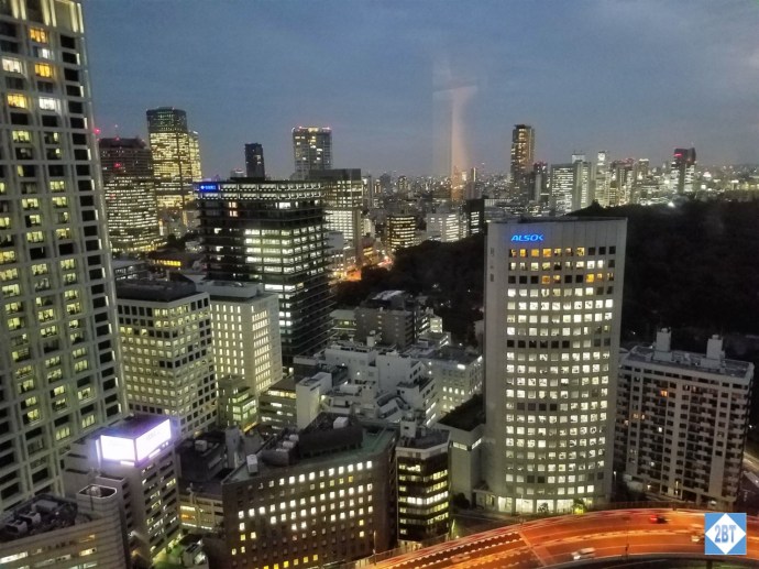 As our room was the last one on the hallway it was curved a bit which gave us two sets of windows to look through. The weather was overcast or raining for a good bit of our time in Tokyo but the city lights in the evening were quite pretty.