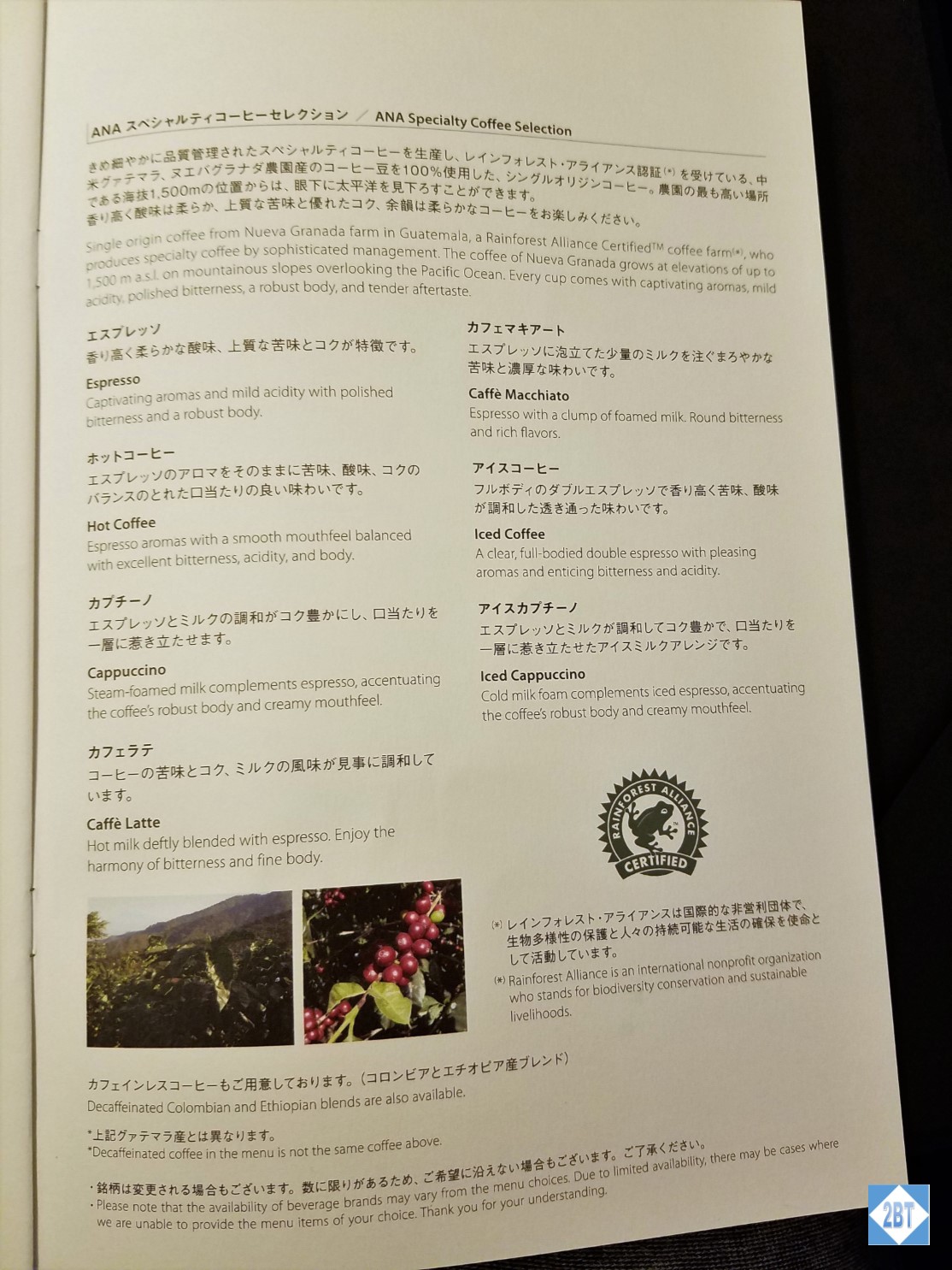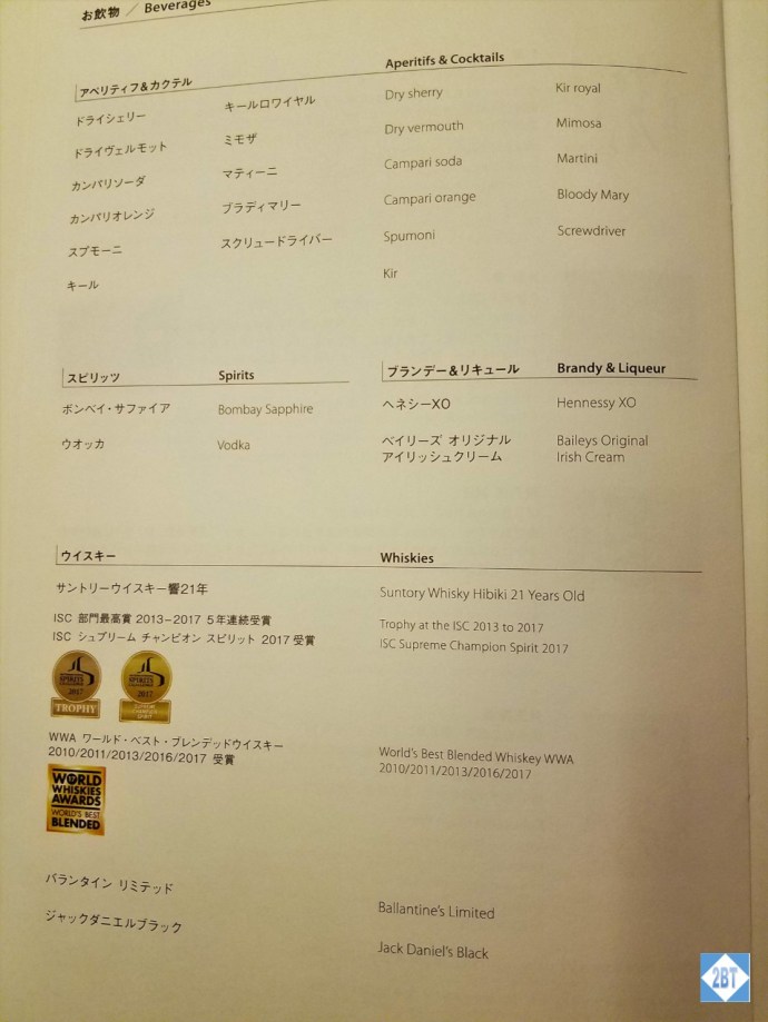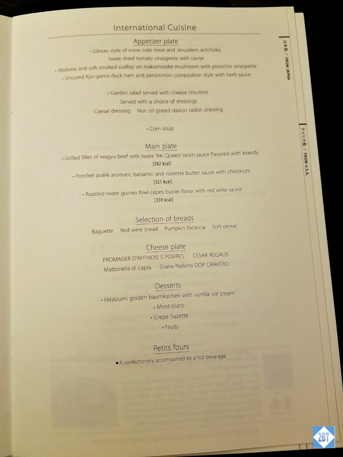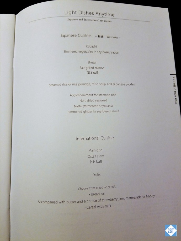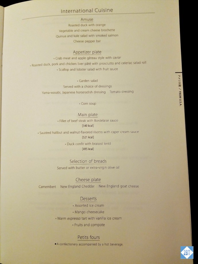 And, in case you’re interested, the menu for the USA-Japan route: