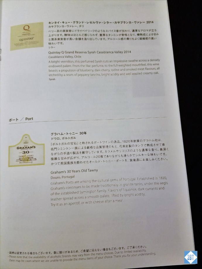 The menu was quite extensive with both a Japanese selection and a Western selection. I felt bad NOT selecting the Japanese selection that Mami recommended but after 3 weeks of Asian food I was ready for something different. The menu on the Japan-USA route: