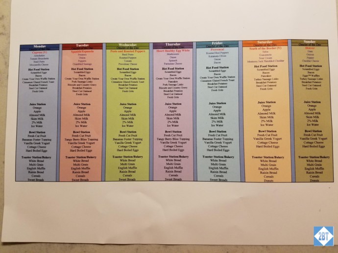 One of the documents left on the counter was a schedule of breakfast offerings for the week. I suspect it’s the same each week but the omelette was different each day and included some vegetarian options as well.