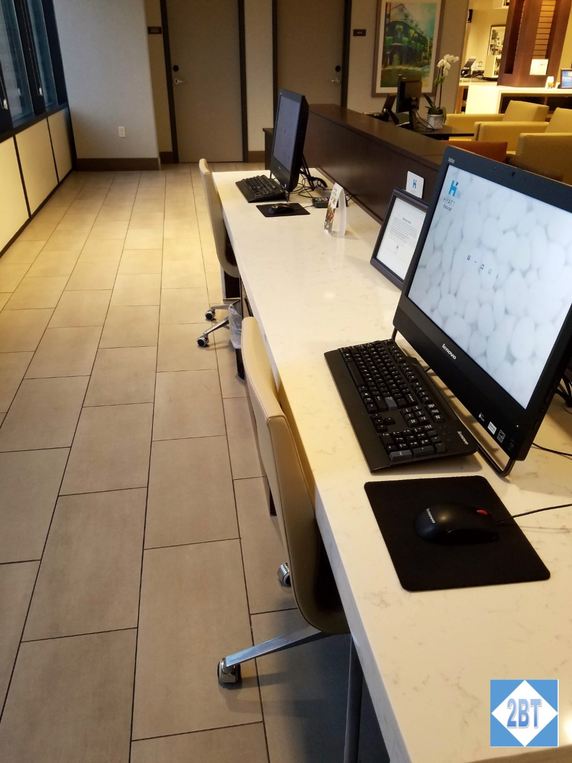 There’s a small business center. The monitors do have USB drives which allowed me to email some photos from my camera.