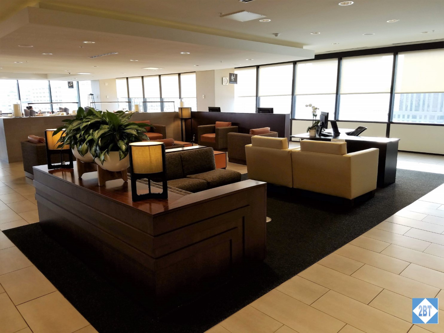 The building housing the hotel is at the corner of Loyola Ave and Poydras Street, with the hotel occupying floors 11-17. The Hyatt House entrance is on the Poydras Street side and there’s an express elevator up to the 11th floor main lobby.