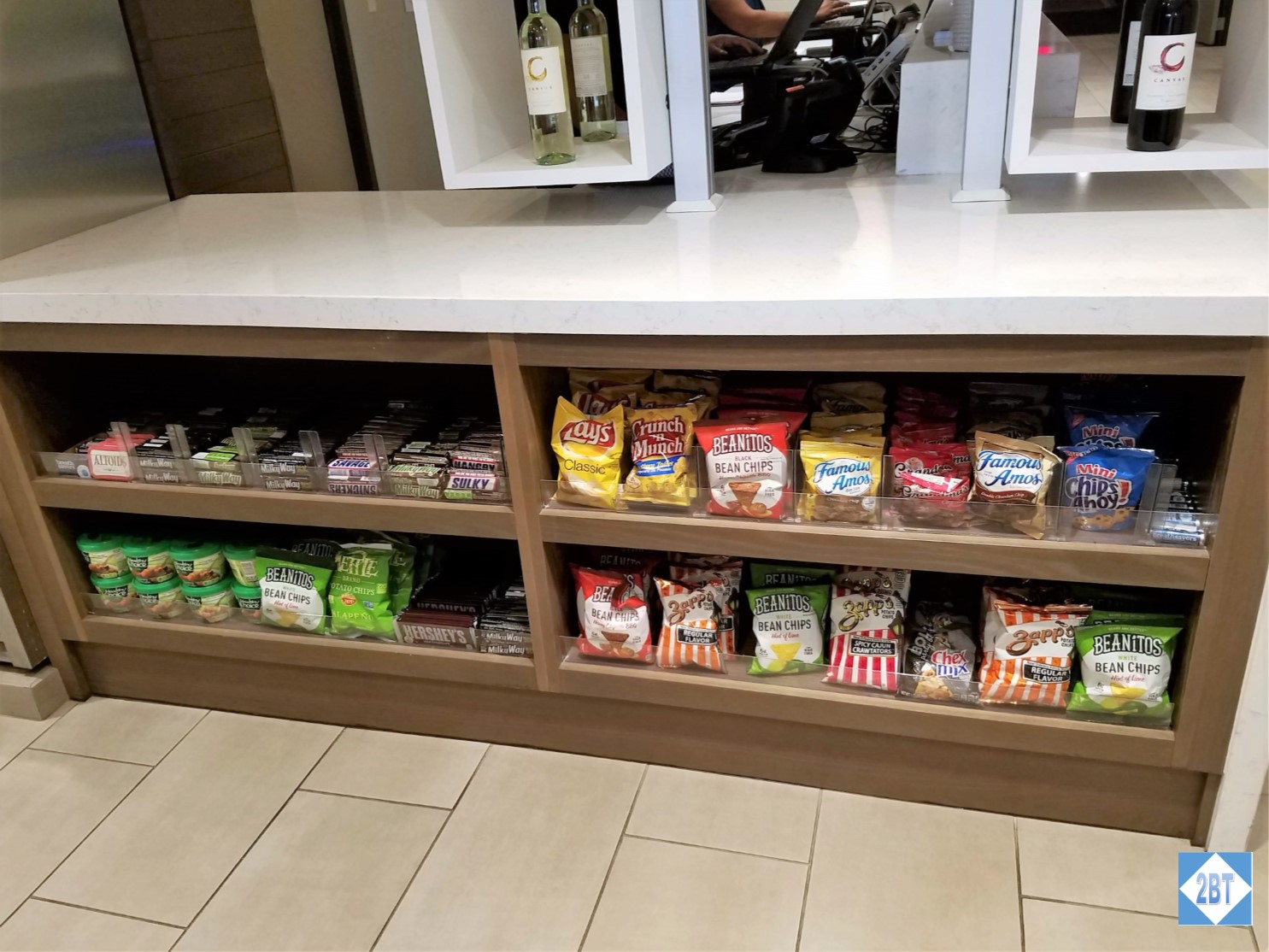 As I arrived after 10 PM there was no waiting to be checked in and the whole process was quick and efficient. Every staff interaction I had was very pleasant. My Discoverist status (a result of holding the Hyatt credit card) was recognized and I told I was being given a slightly larger room. I asked again about a room with two beds, just in case one had opened up, but none were available. I was offered a choice of two of several welcome amenities and I took the 1000 points plus a plate of fruit. I was also given a large bottle of water, and one was available each day per guest.