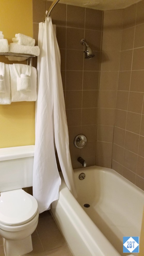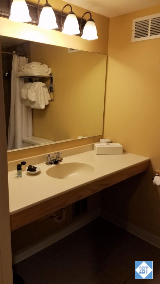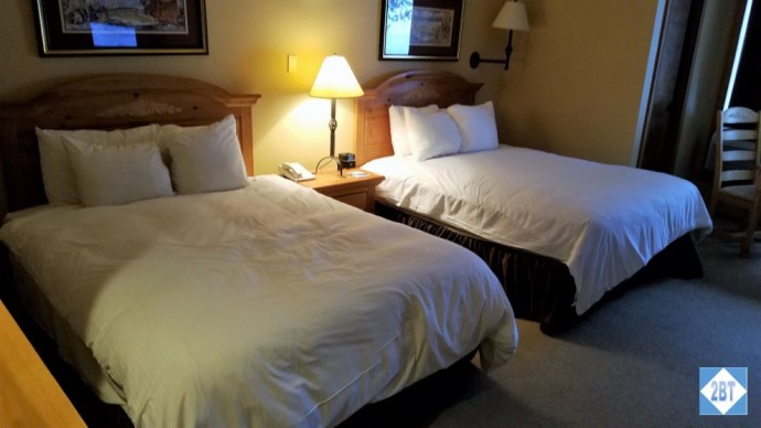 We received a standard room with 2 queen beds. I found it a little odd that even our married couples got 2 queens but perhaps they don’t have a lot of rooms king beds. There was only one nightstand between the two beds but not only was it pulled out just far enough to make one of the outlets behind it easily accessible, the alarm clock also had outlets and USB ports in it. Hooray for making it easy to have my charging devices handy overnight!