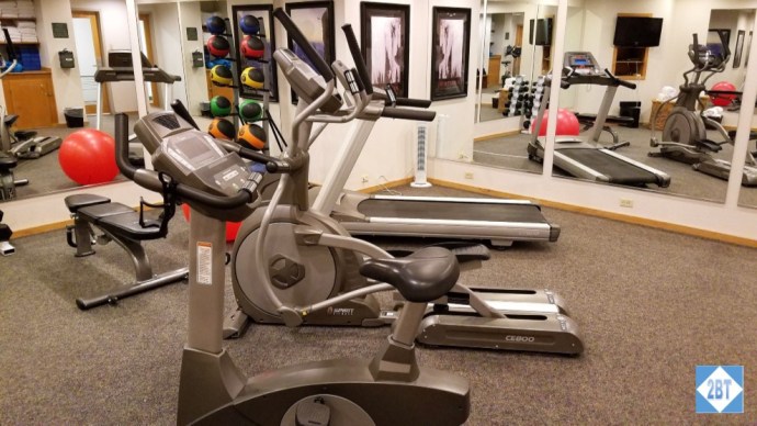 There is a small gym in the basement with three cardio machines, an adjustable bench, some hand weights, medicine balls and fitness balls. The adjacent locker rooms is where you’ll find the saunas.
