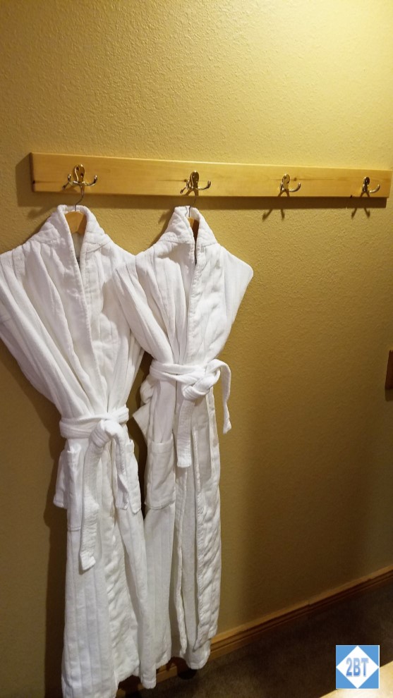 Robes were provided for the hot tub but bring your own footwear. The hot tubs and the heated outdoor pool are all within the same fenced area and are between the hotel and the slopes.