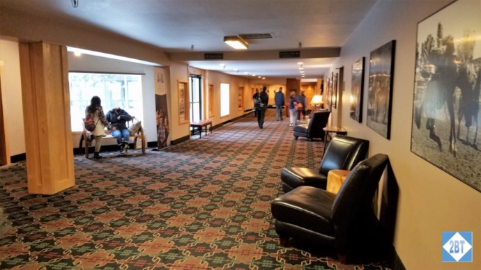 The lobby is not huge but has a fair amount of seating and, like all the common areas, has a mountain theme to the decor. I especially liked the old skiing items mounted up high.