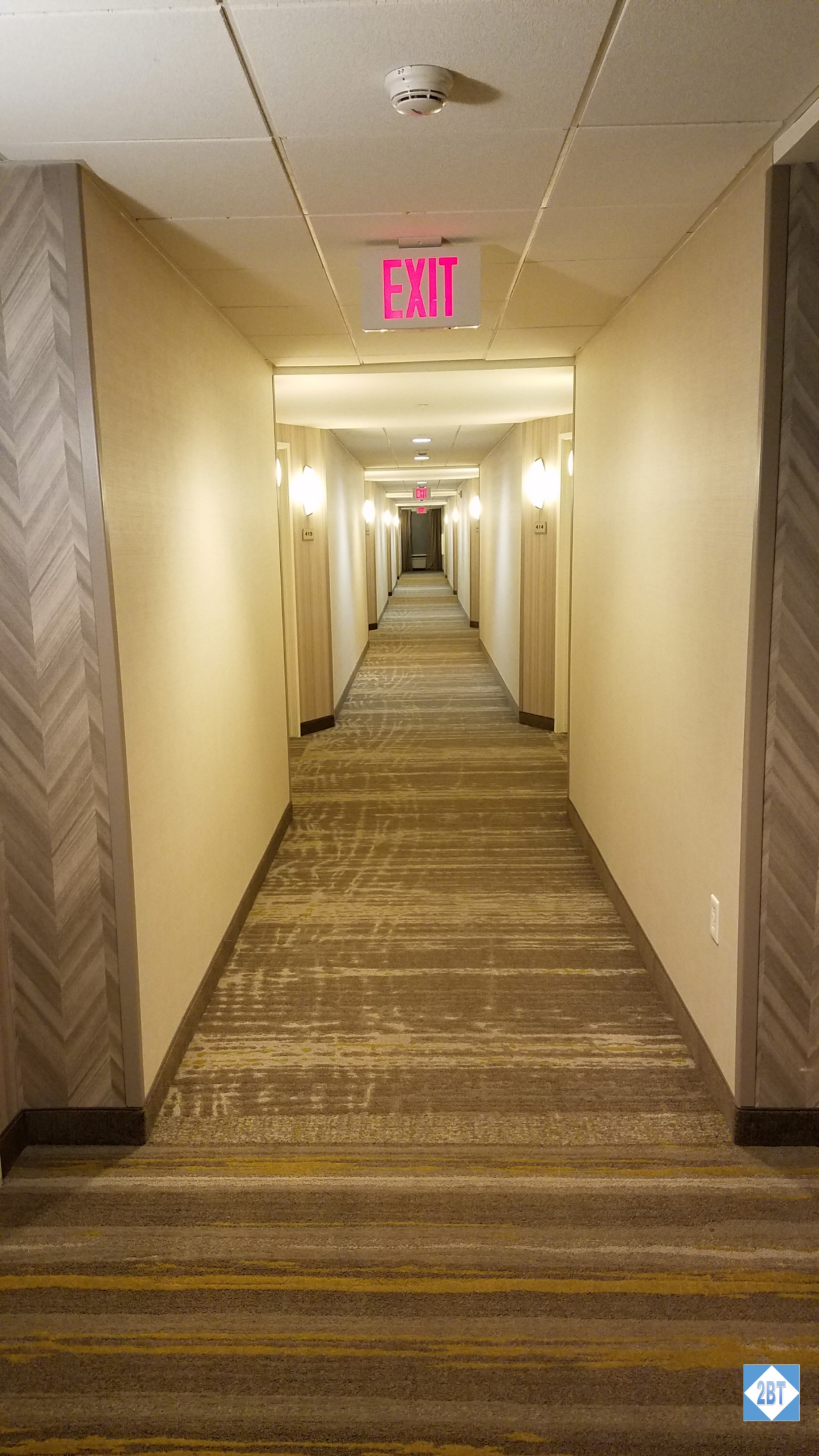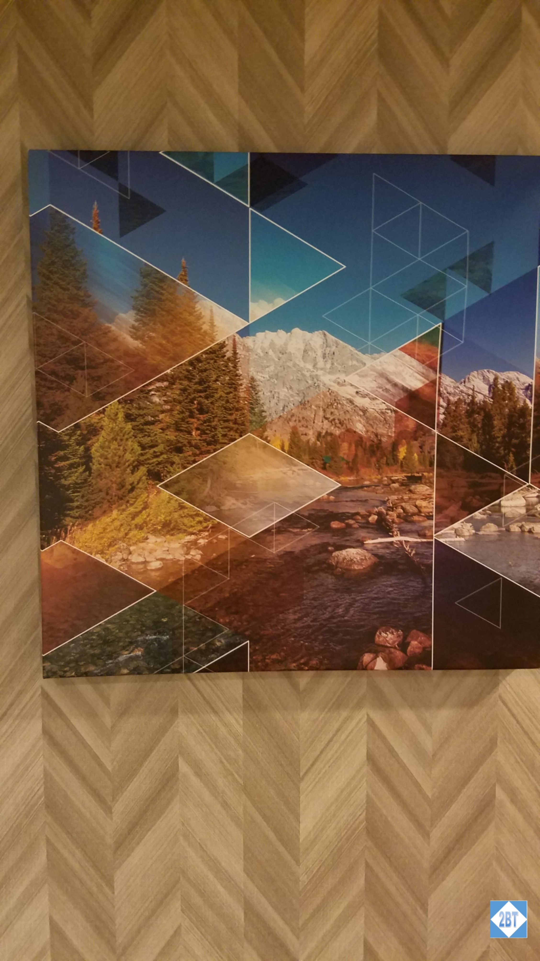 I took the elevator to my room on the 4th floor and was pleased by how large it was. Even if I’d had to wrangle my skis bag on it, it wouldn’t have been too difficult. My room was just over halfway down the hall. I noted that the hotel seems to be fairly new and I really liked the color palette used for the walls, carpet and even the artwork.