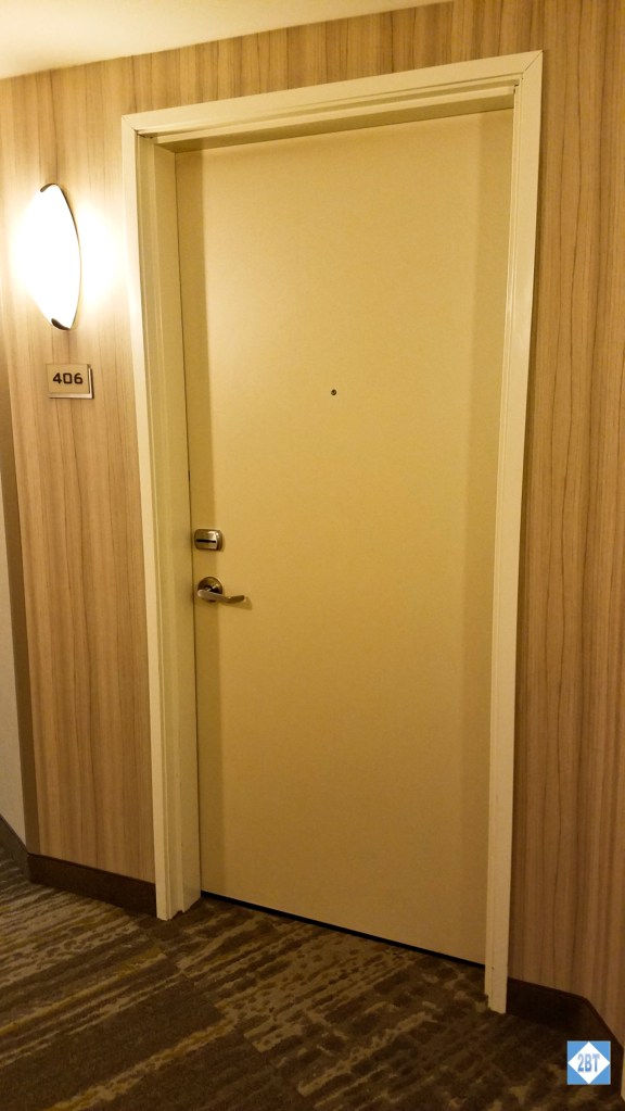 The entryway was nice and wide and I didn’t have any issues pulling in both of my giant luggage pieces plus my rollaboard at the same time. As it was about 11 PM I was the only person checking in and the staff members worked together to get me all set up. Once checked in I told them I’d take my rollaboard and giant bag upstairs and would be right back down to get my skis bag but they proactively offered to just store my skis behind the counter. I was delighted to accept their offer as there was nothing in there I needed for this one-night stay.